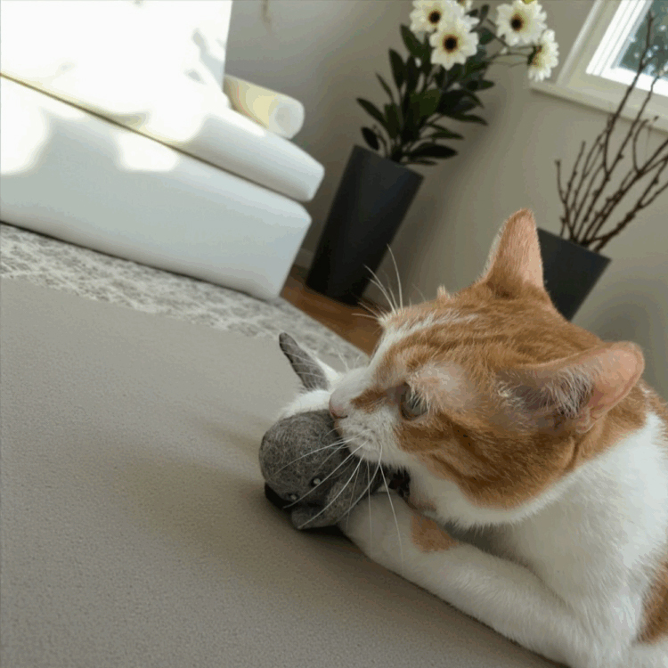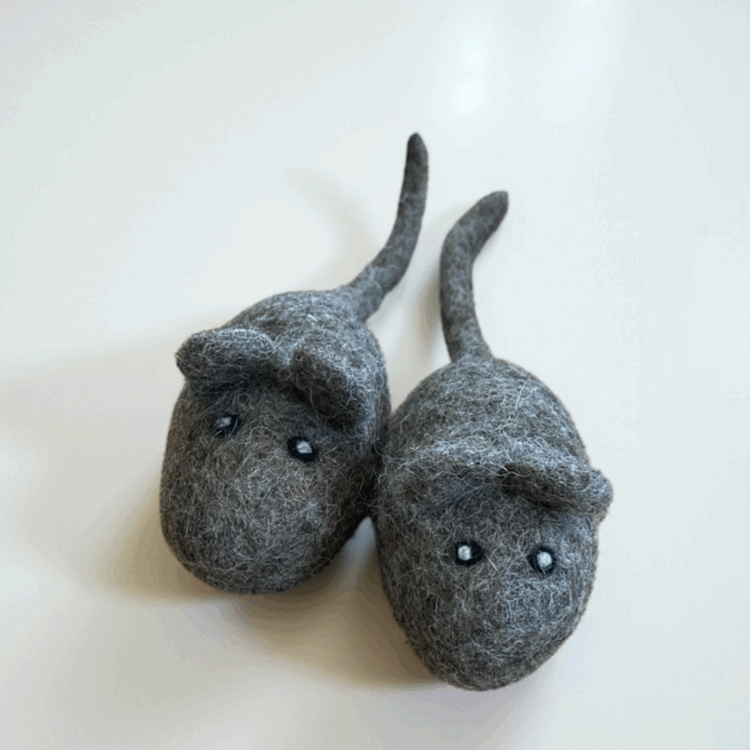 手工羊毛氈製成的蘇利鼠,柔軟又耐咬,激發貓咪天生的狩獵本能。